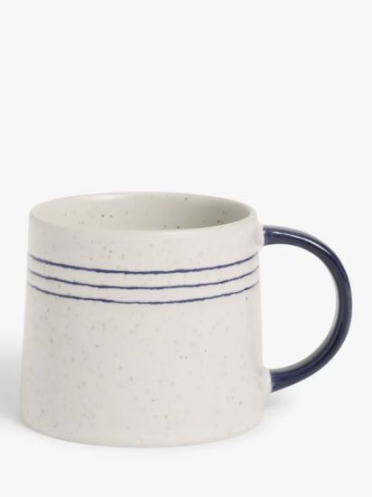 Triple Stripe Stoneware Mug, 330ml, Blue/White