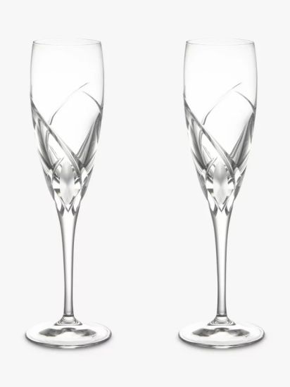 This pair of champagne flutes features a slender body and long stems to preserve effervescence and better enjoy the flavor of chilled champagne, prosecco and sparkling wine.