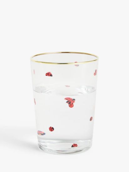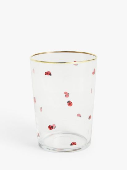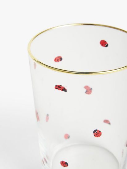 A natural lover's choice, this glass features a screen-printed ladybug and a gold rim. Perfect for soft drinks and cocktails.