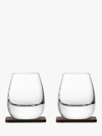 Curved Whisky Tumbler with Coaster, Set of 2, 250ml, Clear